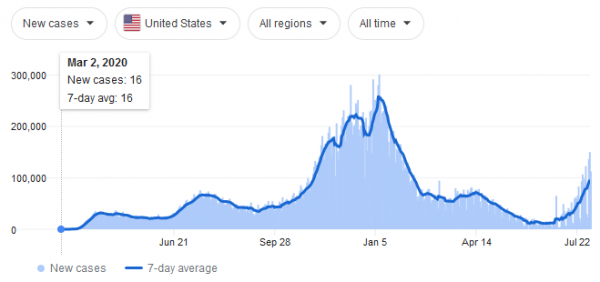 The U.S. is currently averaging 100,000 cases per day, the highest since mid February. At that time 3,000 people per day were dying with covid. Currently 470 people are dying per day with covid, 84% below the mid February amount. Oh the horror!!! We already know, based on the facts, those dying are over 80 years old, morbidly obese, and/or have 5 co-morbidities. This horrific surge is nothing more than a fart in the wind. But that is not how our glorious leaders are treating this farce of a flu.